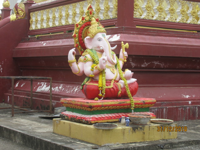 チェディーの前のピンクのプラ・ピッカネー(ガネーシャ神)。
