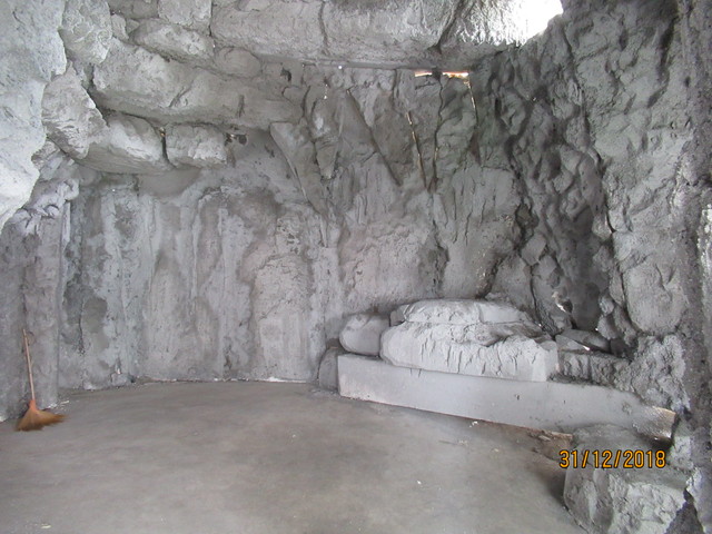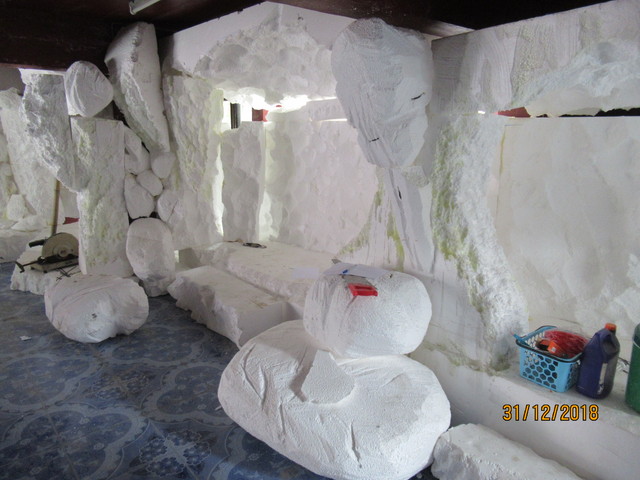発泡スチロールで粗方作って、上からコンクリ?石膏?で固めるって感じかな?