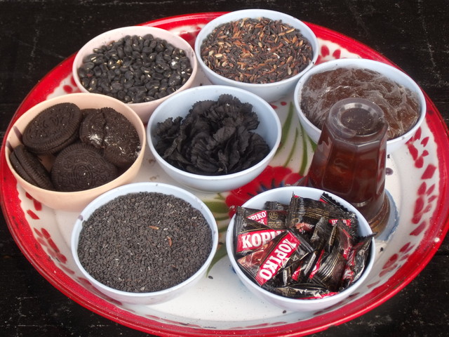 黒米、黒ゴマ、黒豆・・・、それにコーヒー飴、オレオ(風のクッキー)と、黒で統一されています。