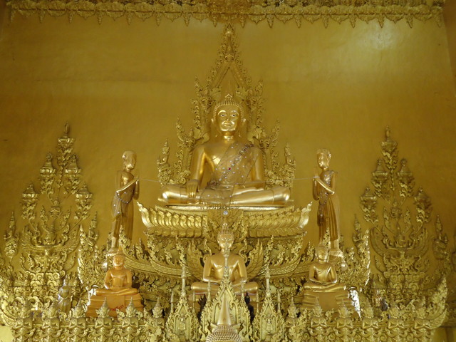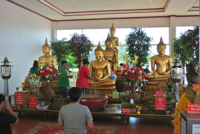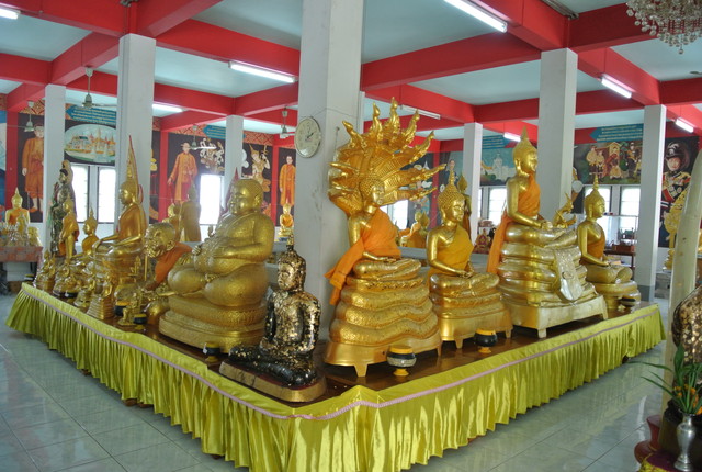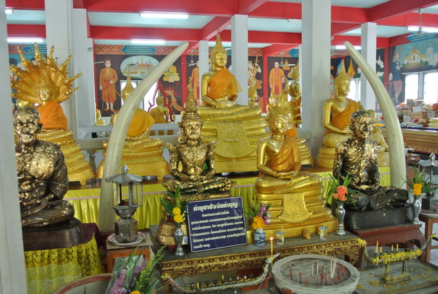一番奥にプラ・プッタ・チナラート風の仏像があり、その前にイロイロな仏像が並んでます。
