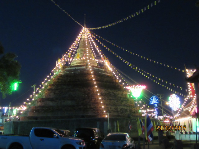 夜、通り掛かったら、チェディーがライトアップされてました。