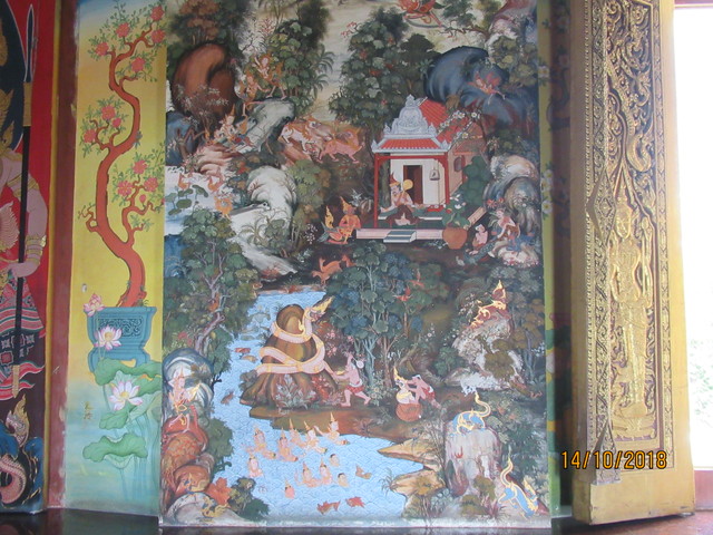 このチェディー、元はモン族が造ったチェディーの上に現在のチェディーを築いてるとかで、この絵はソレを表しているようです。