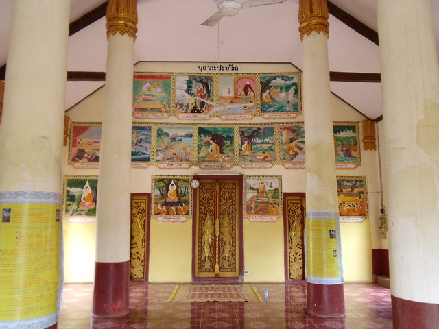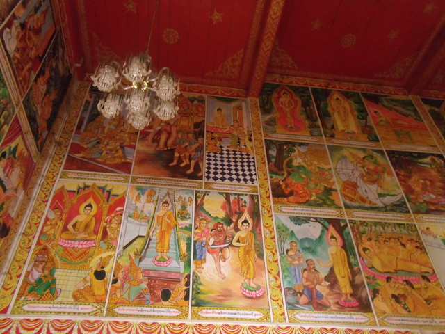 お馴染みのブッダの生涯とかの絵があります。