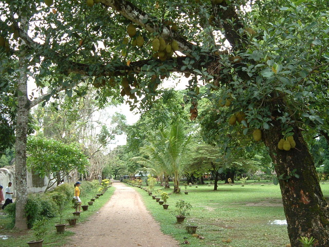 ジャックフルーツの大木に、実が鈴なりになってます。