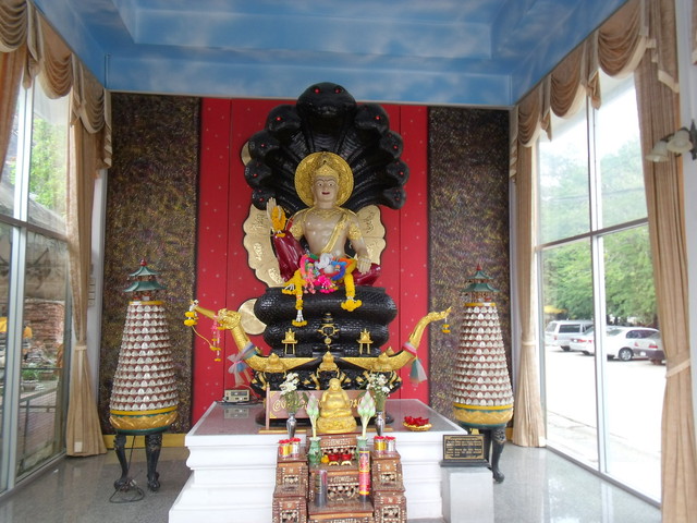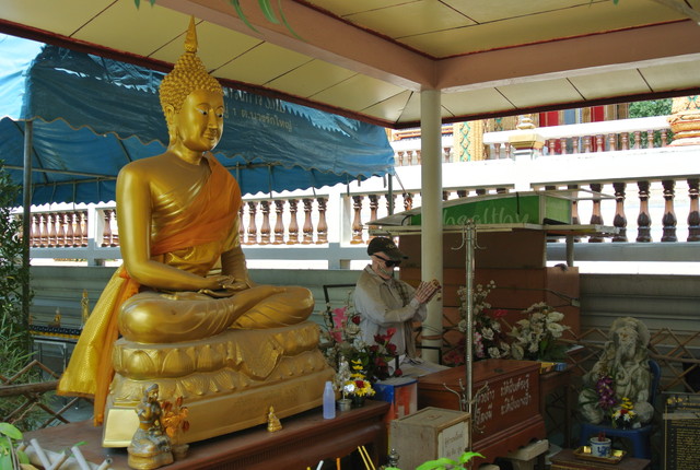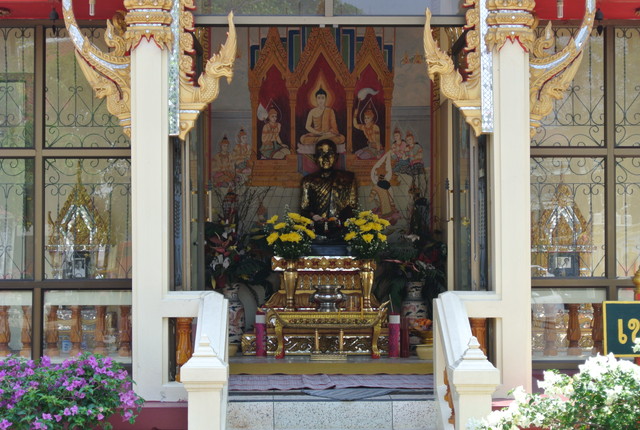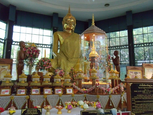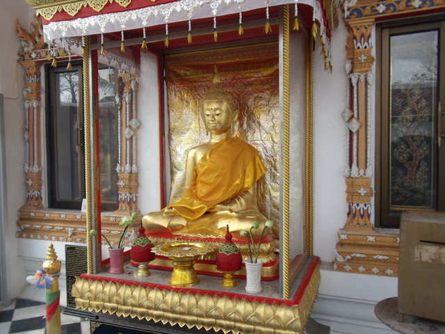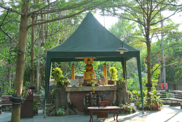 本堂前の礼拝所にあるプラ・ウパクット像。