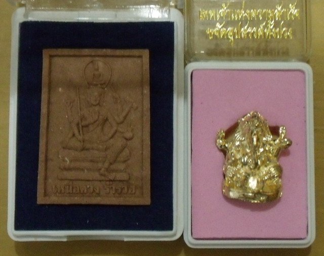 仏像かと思ってましたが、頭にハスの葉を被ってるっぽいのと、下の魚から、プラ・ウパクットだと思います。