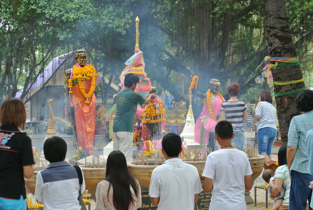 礼拝堂の向かい側にも何体かタオ・スラナリ像があって、参拝者がいっぱいです。