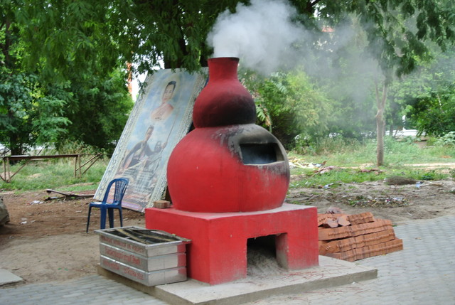たぶん、線香の燃え残りの軸とか、手向けられた花とかを燃やすんでしょう。