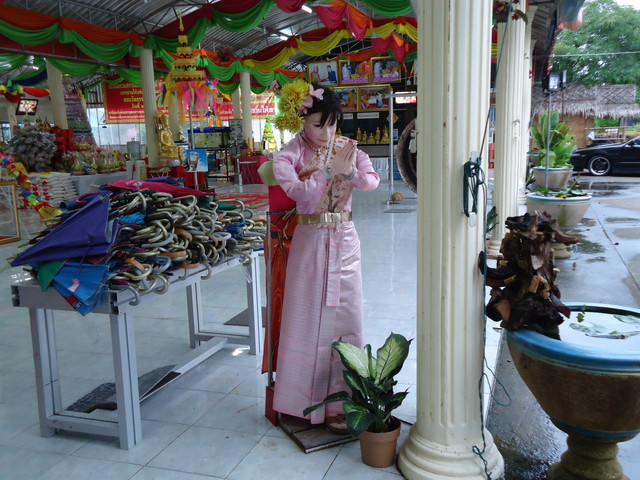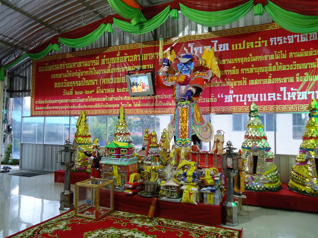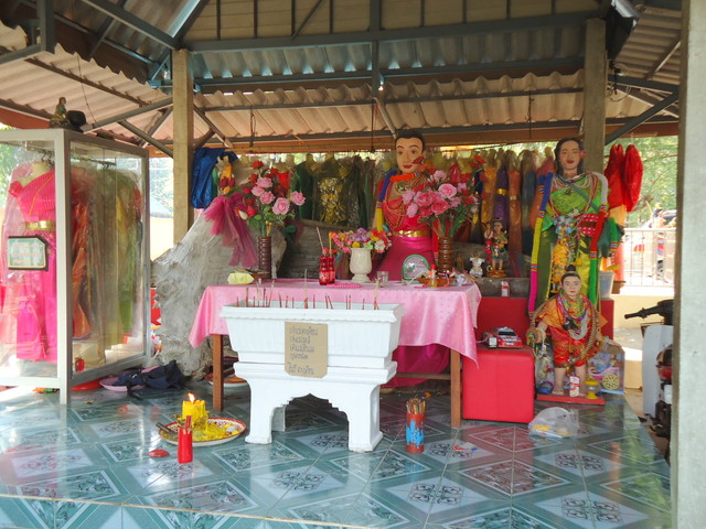 礼拝堂の左に有る礼拝所の仏様とプラ・サンカチャイ像。