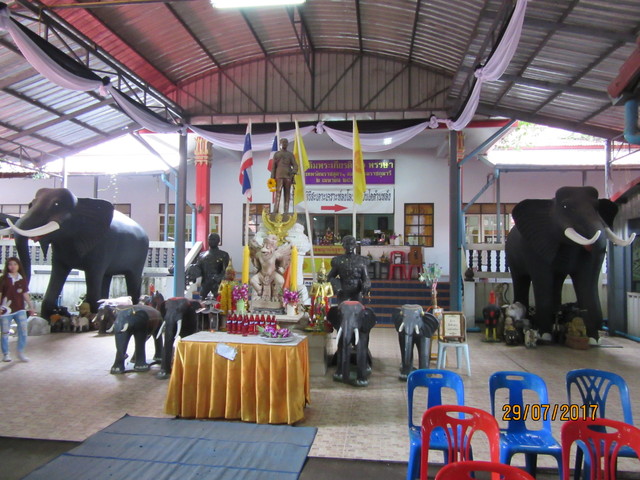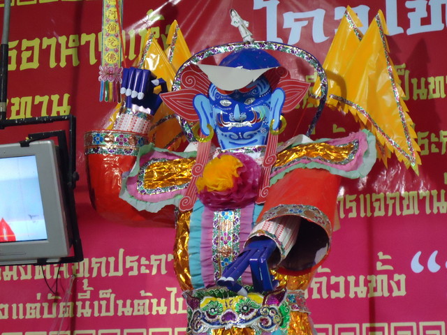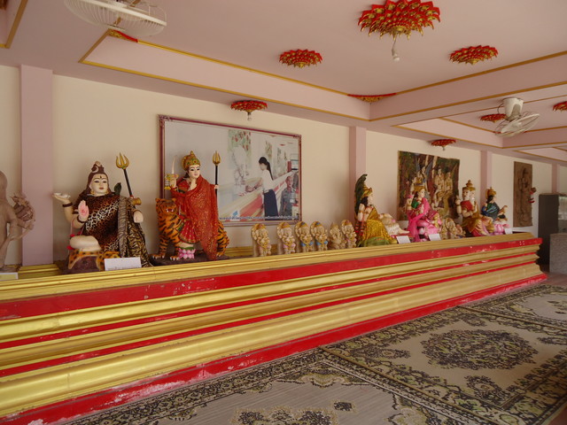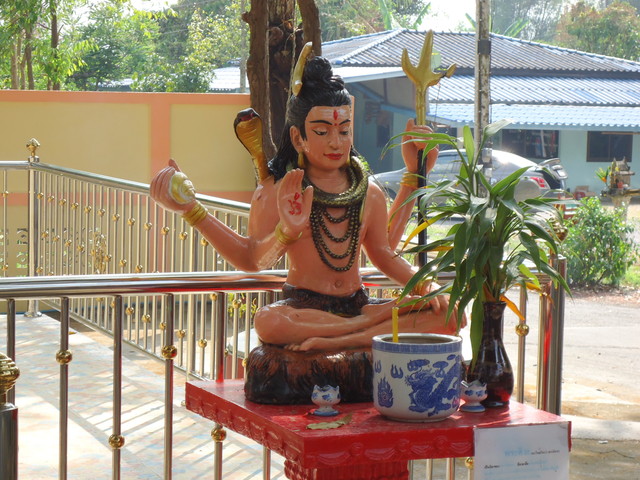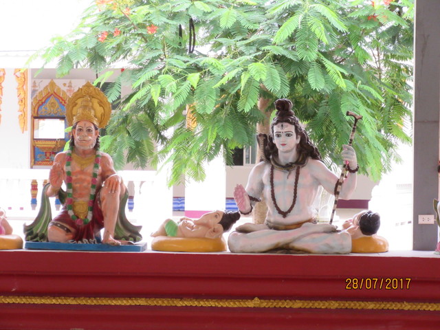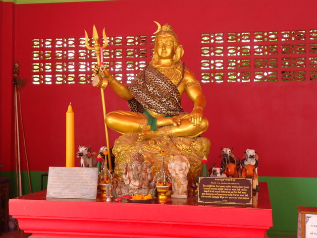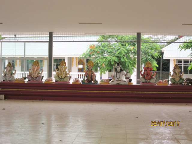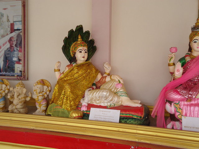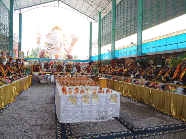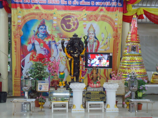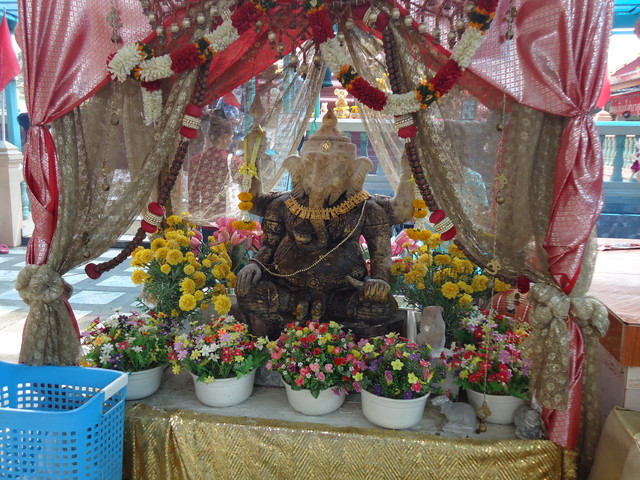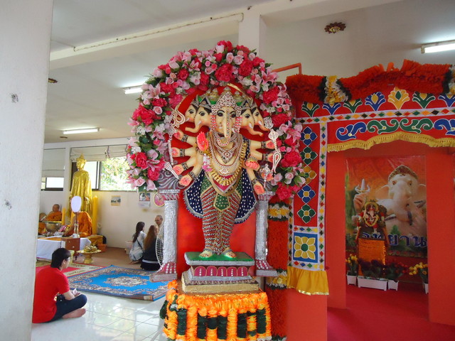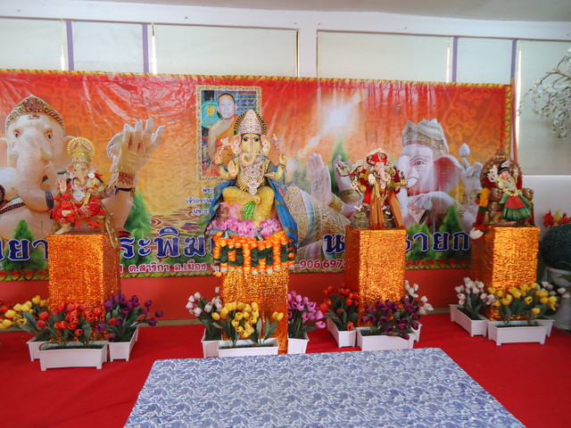 手前にプラ・ピッカネー(ガネーシャ神)像、後ろの垂れ幕にはシヴァ神とドゥルガー女神(ウマー)の絵が描かれてます。
