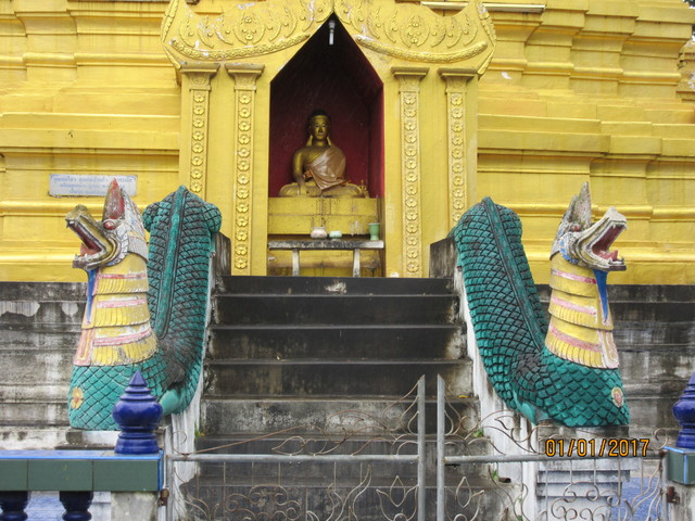 チェディーが本堂内に有り、その中の仏様がご本尊、というパターンは今まで見ましたが、外に有るチェディーの仏様がご本尊というのは、初めて見ました。
