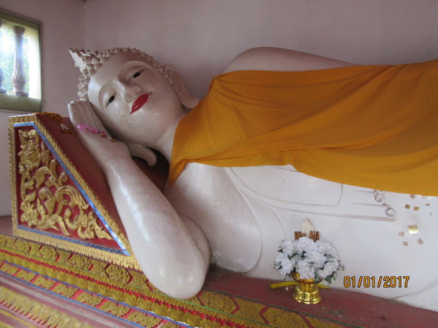 立派なチェディーと礼拝堂、それに涅槃仏と、割と見どころ有るお寺だと思います。