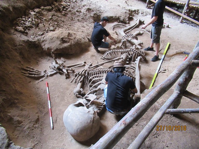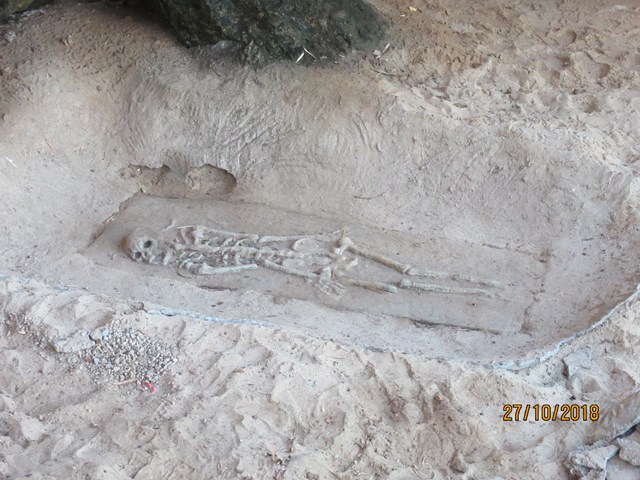 洞穴の入り口階段の近くに有った発掘現場(造り物)。
