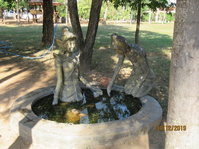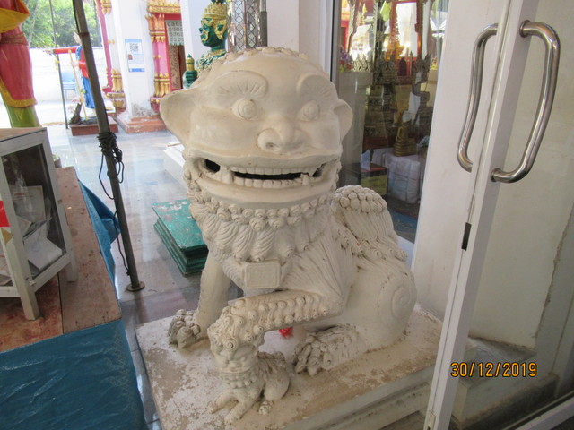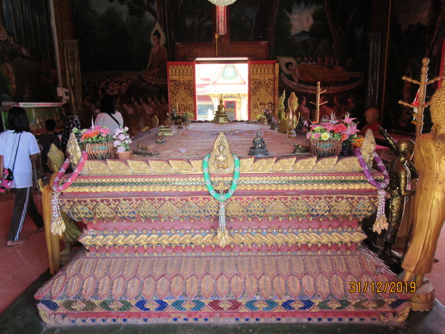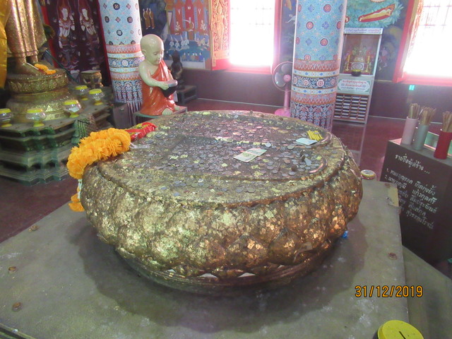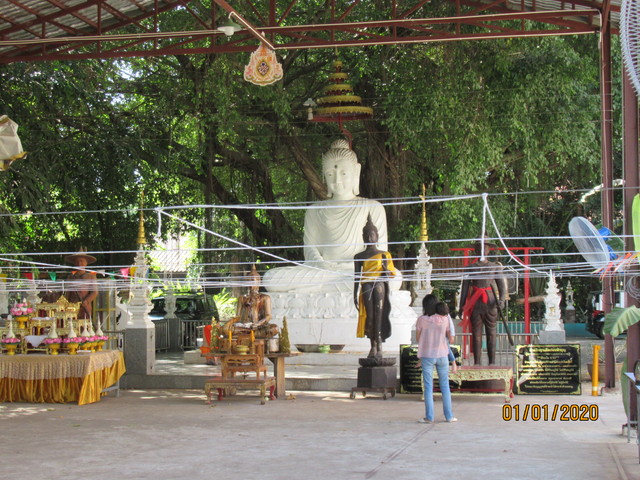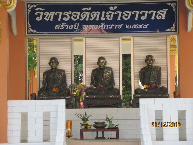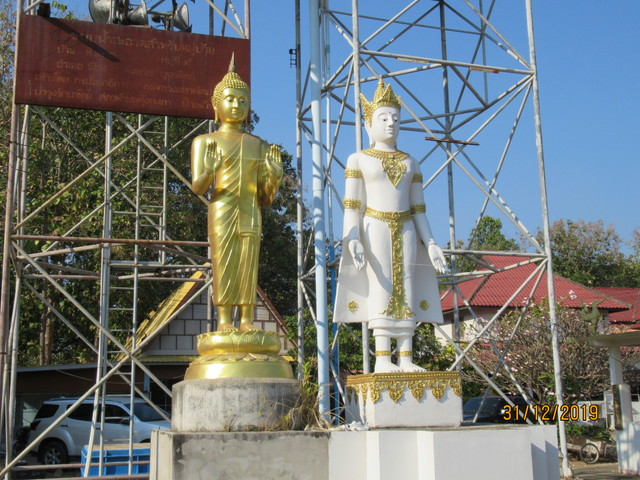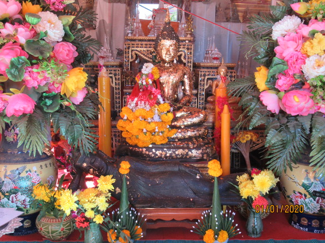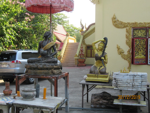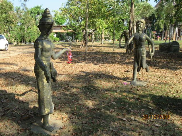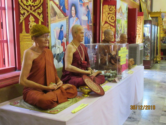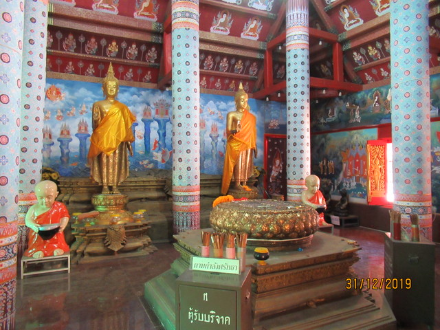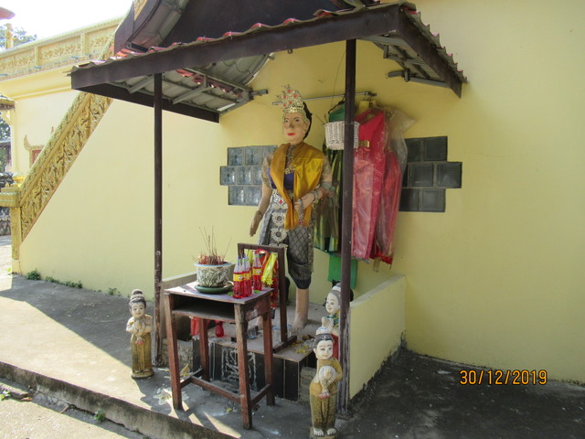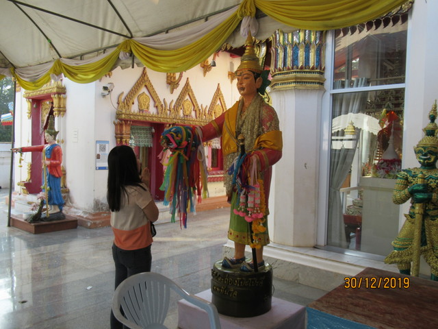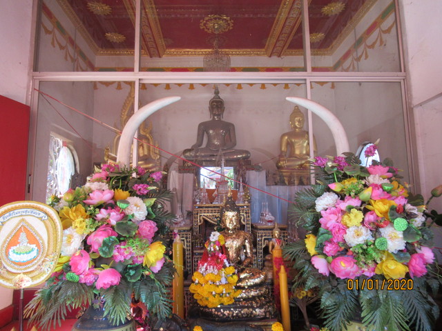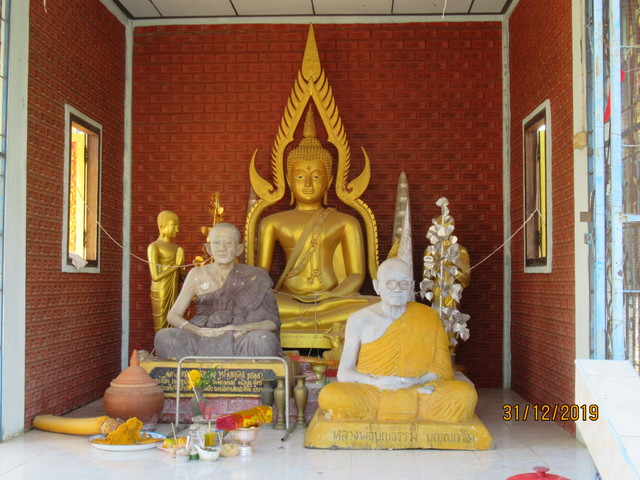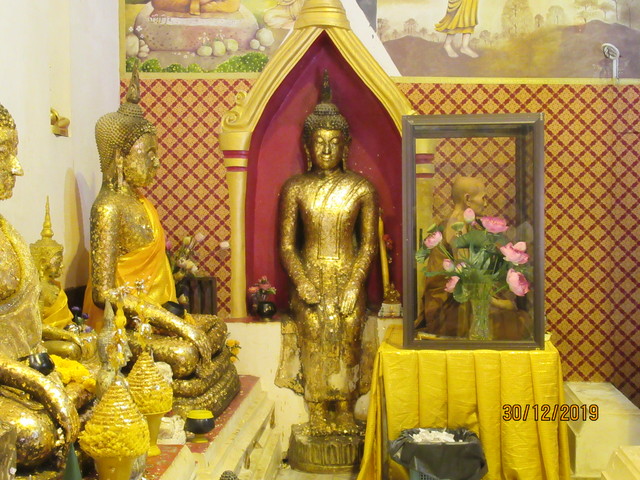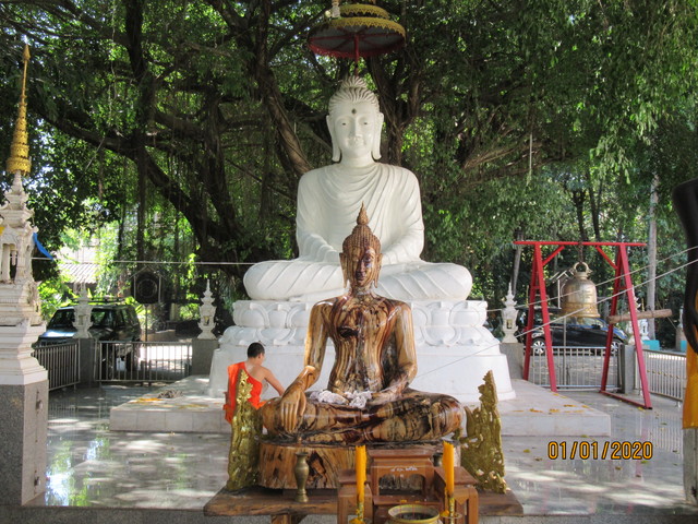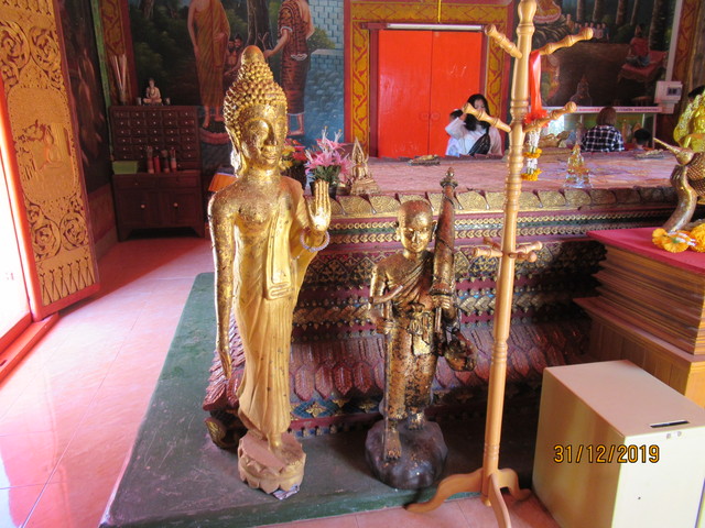 本堂の前に有るプラ・ウパクッとプラ・メートラニーの像。