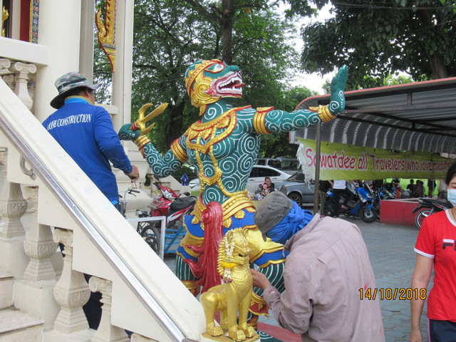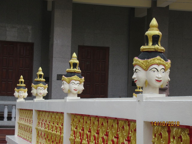 本堂周囲の壁の上に有るプラ・プロムの生首・・・?