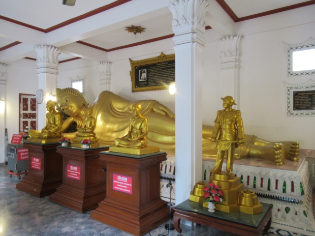 涅槃仏とお坊さん像、右手は王様かな?