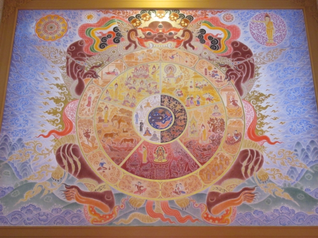 背後にデカい仏様のお顔が描かれてます。