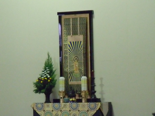 仏壇にお坊さんがお経をあげていました。