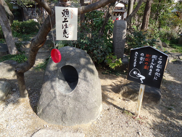 地獄堂の前あたり、「地獄の釜の音」が聞こえるという石。
