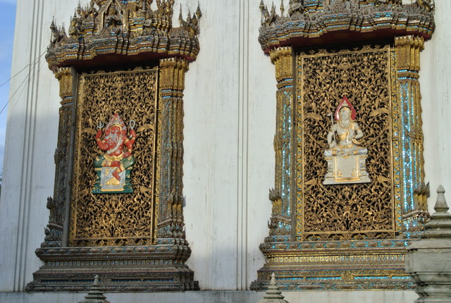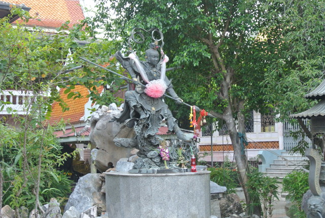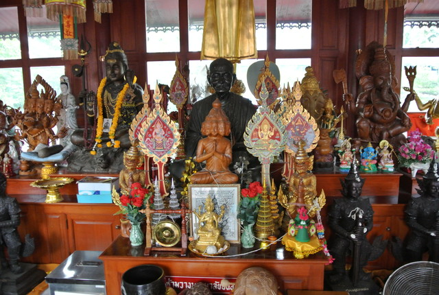 右側にも立仏1体とプラ・ピッカネー(ガネーシャ神)、真ん中は・・・、関羽でしょうか?