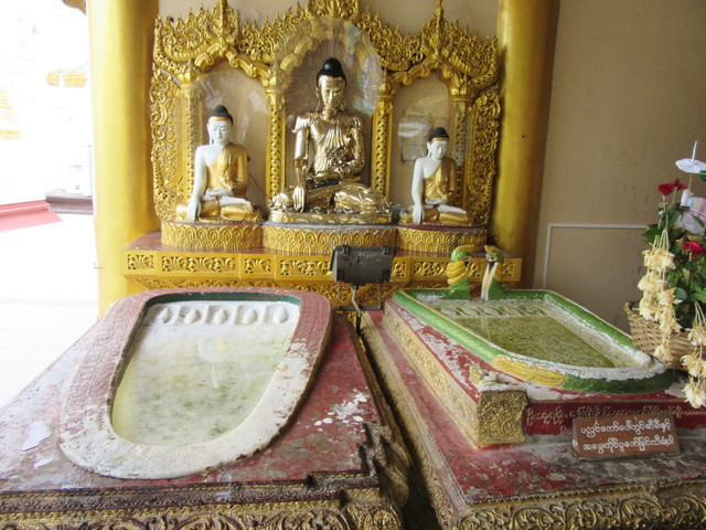 仏像に水を掛けています。