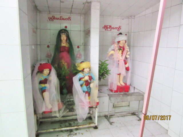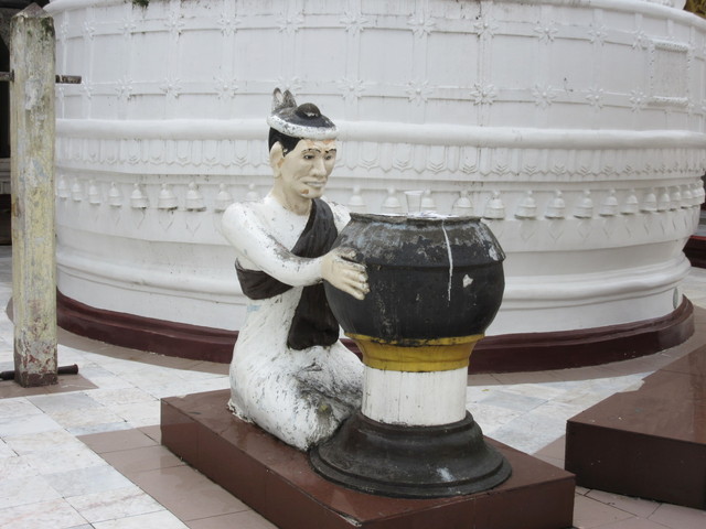 タイでは、ハスの葉を頭に乗せているのと、合掌している姿とコレの3種類が有りますが、ミャンマーではこの姿だけみたいです。