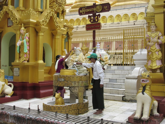 自分の誕生曜日のコーナーの仏様に水を掛けたりしています。