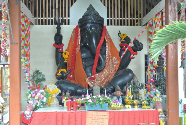 本堂左の建物のプラ・ピッカネー(ガネーシャ神)像。