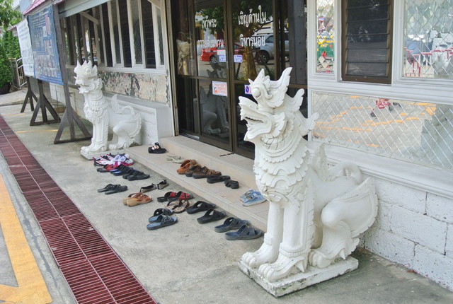本堂裏側の遊行仏(プラ・リーラー)。