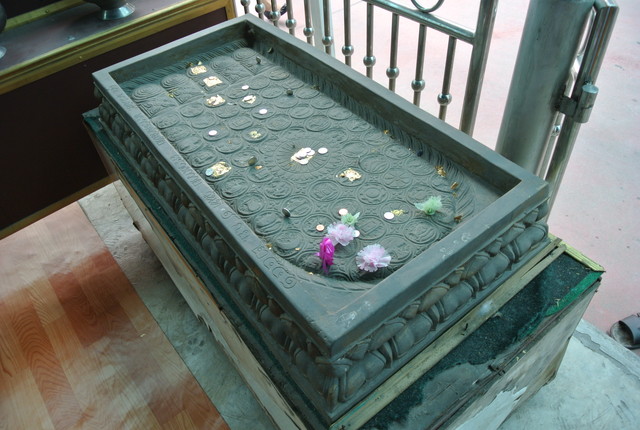 礼拝所中央に有る、舟に乗ったお坊さん。
