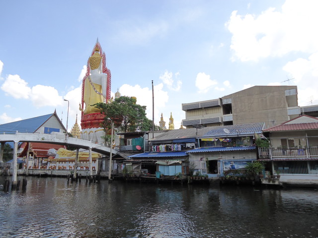 左に見える白いのは、ワット・パクナムの大チェディーです。