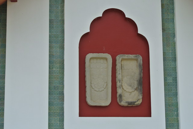 本堂の裏側の壁に仏足跡が有りました。