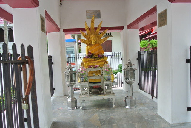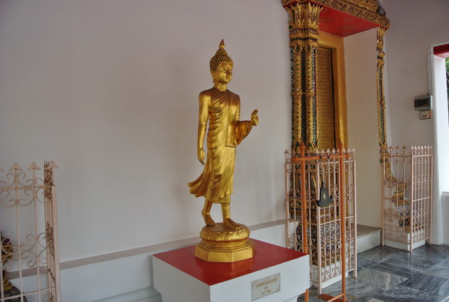 本堂正面の遊行仏(プラ・リーラー)。