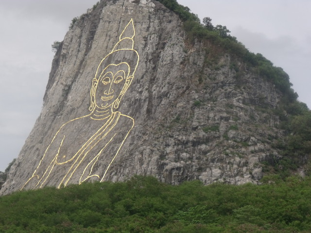 山の岩肌に仏様が描かれています。