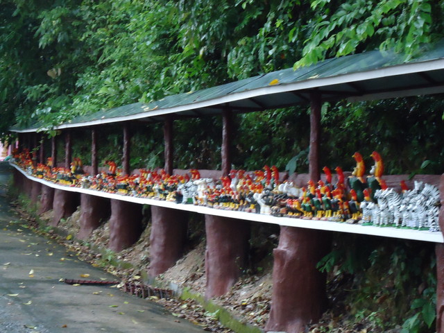 さっきの階段の途中、右の方に行くと、ニワトリの置物がイッパイ並んでます。