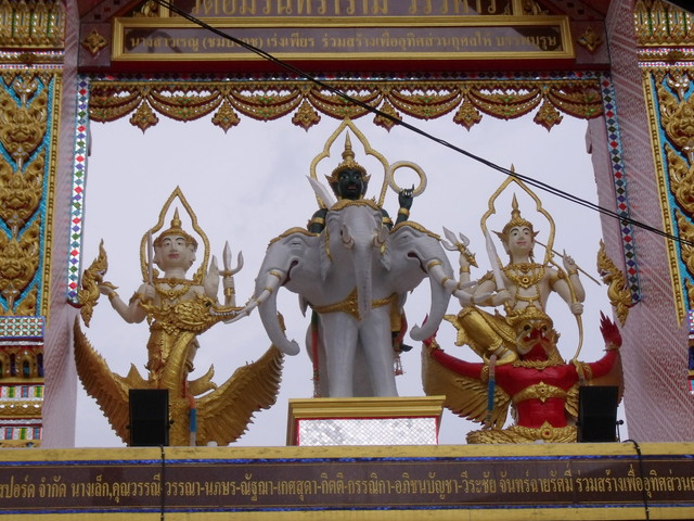 門の上の部分には、それぞれホン(ハンサ)、エラワン、ガルーダに乗ったプラ・プロム(ブラフマー神)、プラ・イン(インドラ神)、プラ・ナライ(ヴィシュヌ神)の像があります。