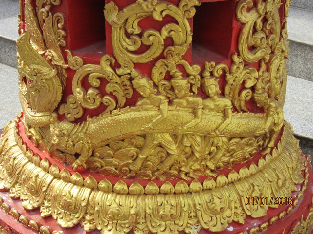 タイのお寺でたまに同じようなの見ますが、何を咥えてるんでしょう?