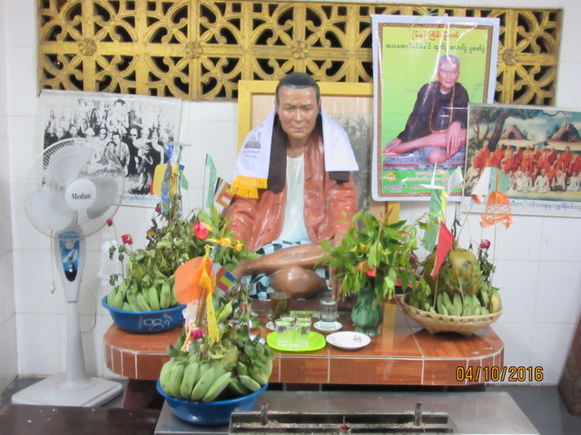ミャンマーではよく見かけるこのお方ですが、この像、なんか違うと思ったら、左上を見てますね。